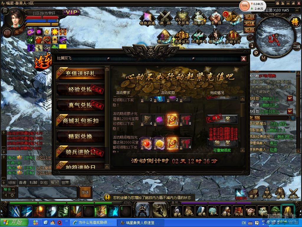 我今天用电信充值卡,冲了2000元宝,为什么领不了2000元宝充值的奖励,只能领前两项。