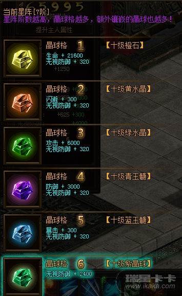 当星阵达到2阶时,开启星位晶石孔,可用于镶嵌晶石,增加无视防御伤害;