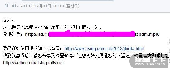 晒单-积分兑换的:瑞星之歌《狮子把大门》很好听哦!