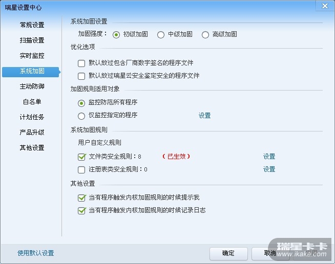 强烈建议系统加固多支持些通配符,类似这样的规则“C:\Documents and Settings\Administrator\桌面\*.lnk”都没法写。瑞星想重回第一要改的地方真多,用户体验得先改,看个电影弹个装防火墙的建议。。。。。。