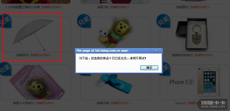 我每天准时10去兑奖,即显示下图,请问工程师,雨伞是不是没货了?