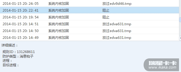 然后再说BUG,正如上图所示,瑞星将攻击源识别错误!我打开XueTr,瑞星却提示“System”加载内核驱动,而不是XueTr,说明攻击源不能正确识别,而且这个问题已经出现很多次,望改进。