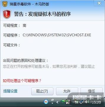 今天开机,启动电脑瑞星就弹出木马防御对话框