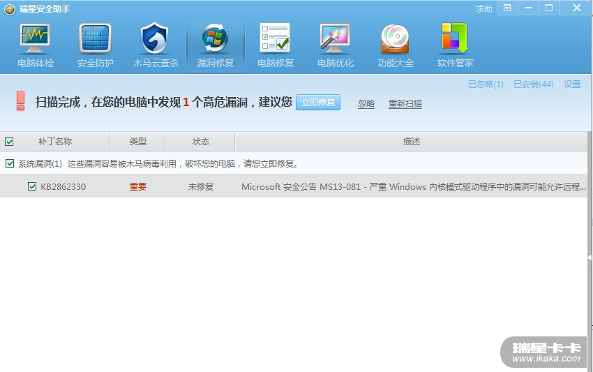 在微软官网下载这个补丁安装后重启电脑,在启动中途就卡住了,一直什么都不起作用,最后硬关机再重新启动了一次后就好了,但不知道这是为什么,是不是这个漏洞的原因?一直有点担心啊。目前助手漏洞已经完成修复了。