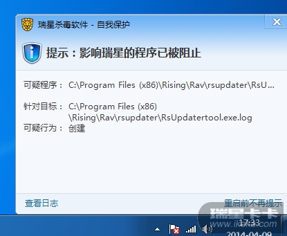 Win7 64位系统下瑞星不断提示自己阻止自己