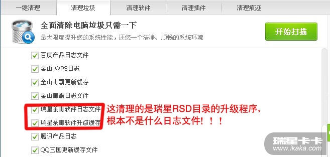 这是由于360和新毒霸误导瑞星用户清理“瑞星日志文件”,而实际默认清理的是瑞星杀毒软件的“升级程序和数据目录文档”。
