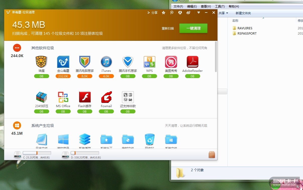 安全卫士、新毒霸等软件对电脑进行“一键清理”垃圾操作后,会导致瑞星杀毒软件