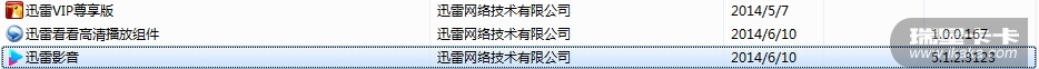 其中,迅雷影音在2014年6月10日重新安装(覆盖)