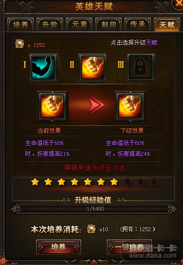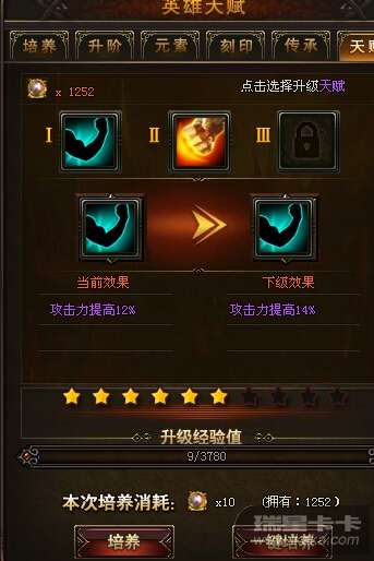 我今天升的是第一个天赋,强力,升完之后,再打开数据还是提升12%的攻击,第二个天赋,残暴,我早就升到现在的数据了,就因为他们两个差距太大,所以我今天才想着把强力增强一下