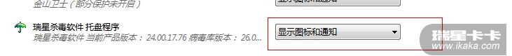 刚安装的瑞星杀毒 为什么 右下角不限时小伞 只有一个狮子 想显示出伞 怎么设置