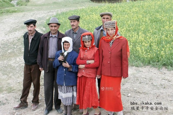 柯尔克孜族家庭全家福。新疆克孜勒苏柯尔克孜族自治州阿合奇县。被称为“活着的荷马”、史诗《马纳斯》传演大师居素甫一家五代同堂 。