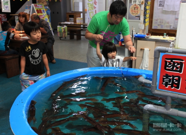 商家很会做生意:吃之前还可以娱乐一下——一个小吃货在爸爸的指导下钓鱿鱼: