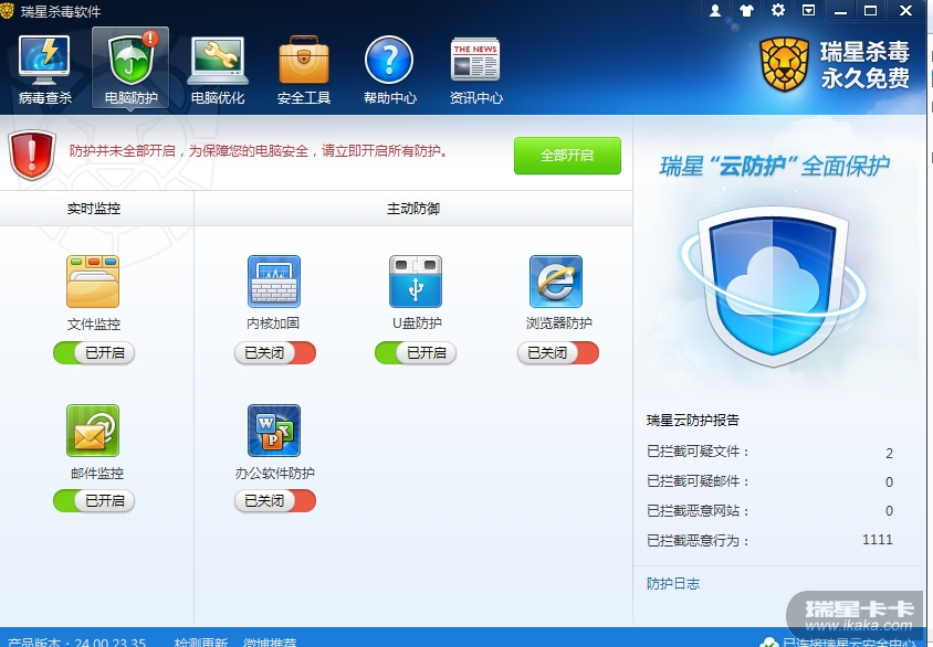 [疑似bug] 杀毒软件里面的电脑防护不能开启?