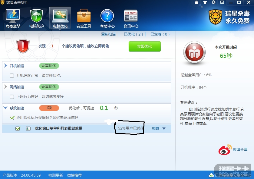 回复:瑞星杀毒开机优化BUG