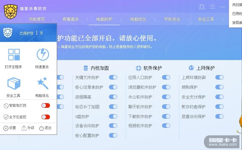 而主程序 显示 所有防御都打开了, 但是 无法进行操作!!! 也就是关闭不了
