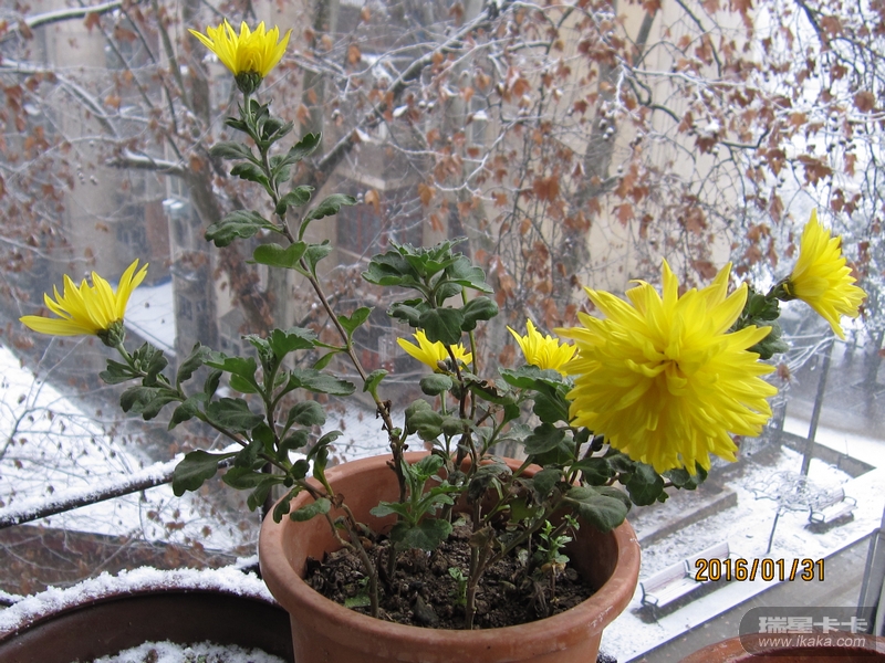 当秋菊开始凋谢,冬菊开放了!它和腊梅一样,顶风斗雪,给寒冷的冬天带来了温暖。