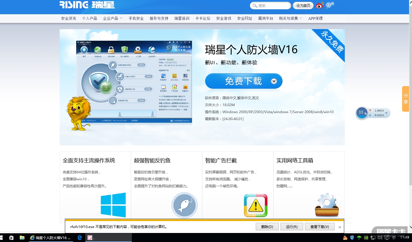 回复: windows10下载瑞星防火墙为什么会被拦截