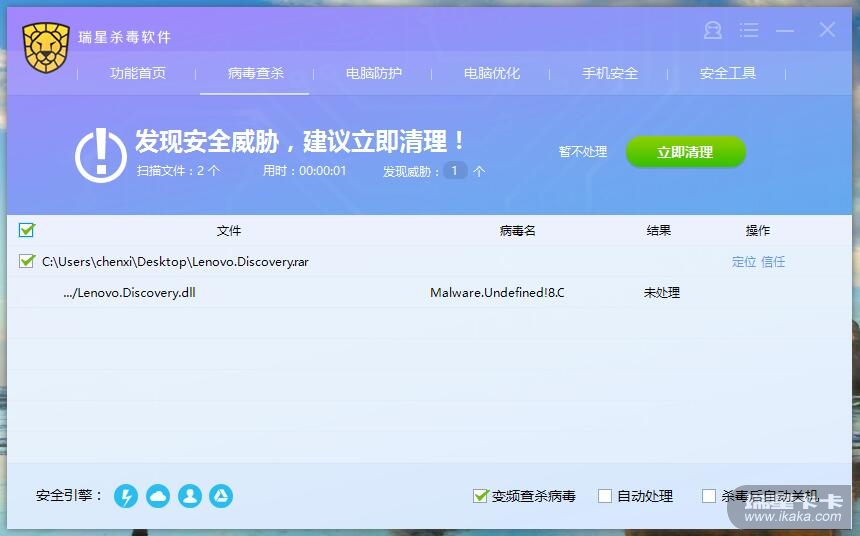 建议星星在查杀结果界面显示:被发现的各相应病毒所对应的相应引擎,这样对客户而言显得更清爽清晰。