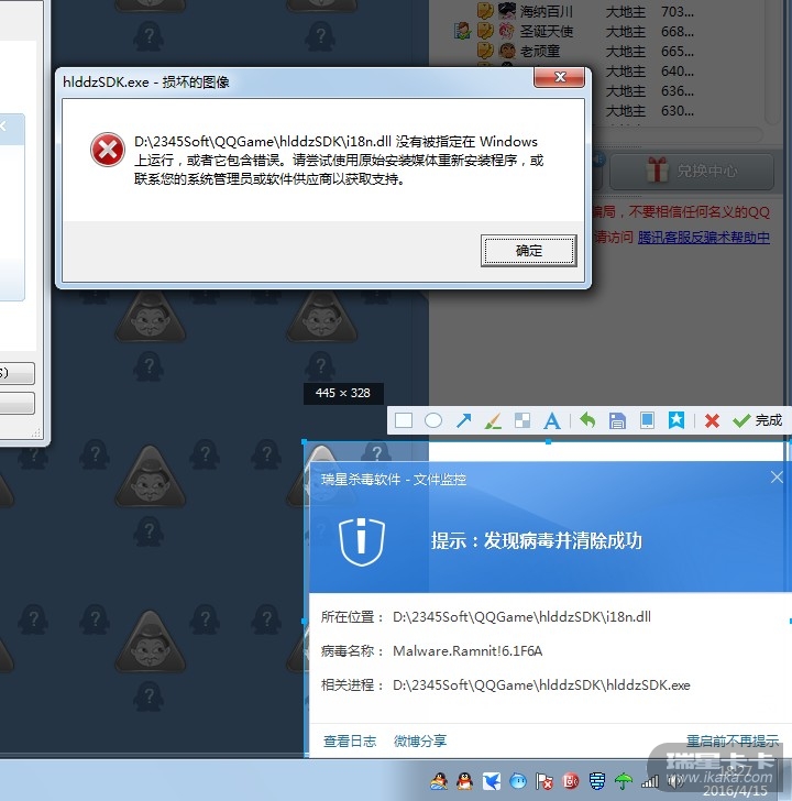 玩QQ欢乐斗地主时,发现V17有误报的现象发生。(如图所示)