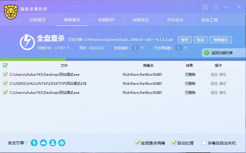 果然 ,瑞星又是 与病共舞 ,处理不干净啊!!!