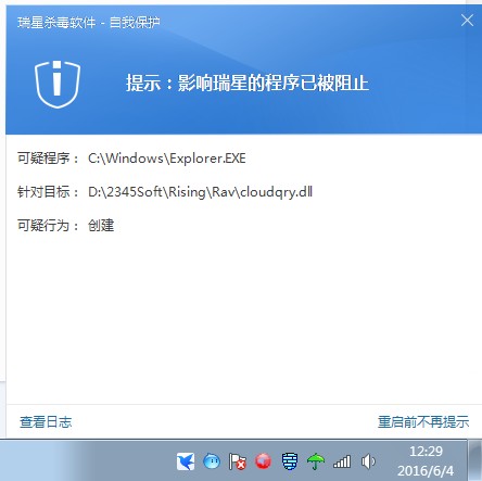 导入新的杀毒引擎时,出现自我保护提示框。(如图所示)