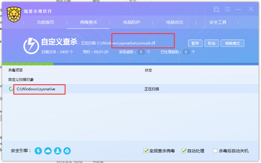 4、使用瑞星扫描这两个路径