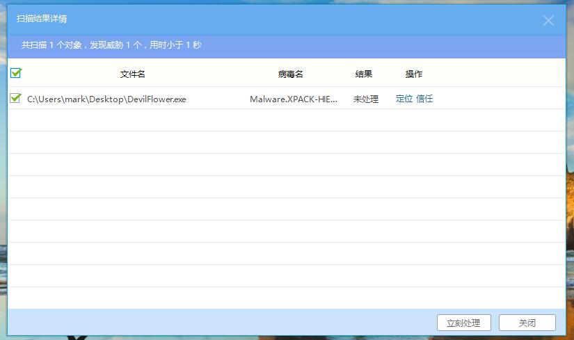 结果 : 接收方 ,收到这个 病毒exe后 ,文件监控不报警!!!没有任何提示 ,只有右键扫描时 才报警!!!