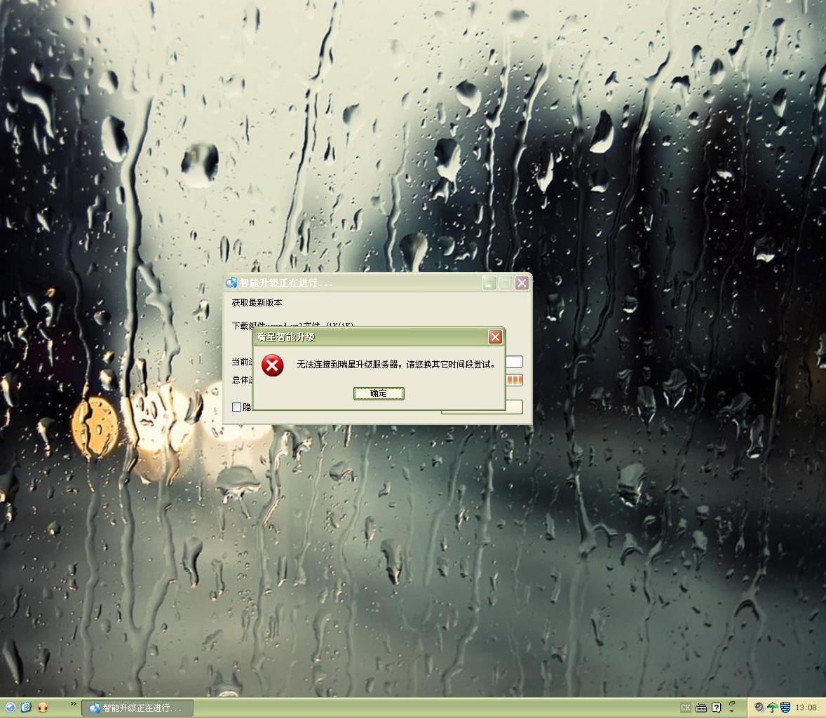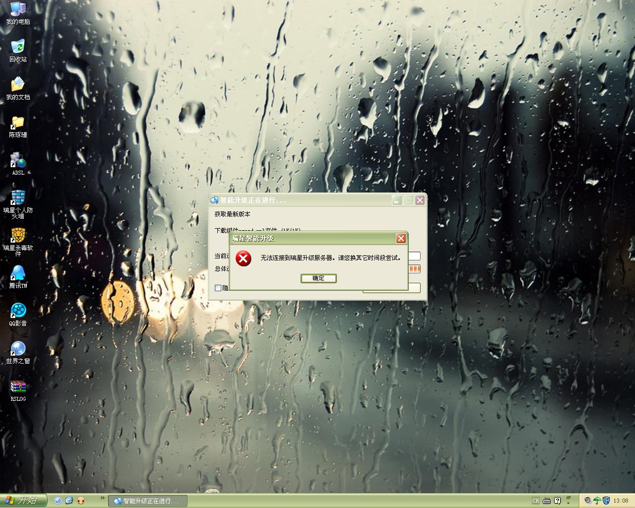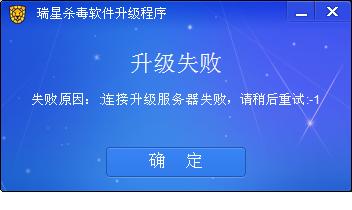 从17号开始每次升级都提示 无法连接到瑞星服务器:-1,瑞星杀毒与防火墙都是同样问题,重装过软件,问题依旧,并且三台电脑都是同样的问题。在设置里 测试 也是提示 “连接成功,可以正常升级”。