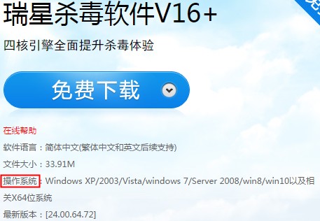 浏览瑞星官网时,发现有一处罗里吧嗦的地方,还可以更为简洁的语言文字描述。我觉得直接把“操作系统”、“运行环镜”里的内容全部修改为“