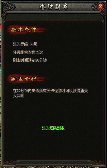副本,在副本中玩家在规定的时间内击杀所有怪物即可通关。当玩家通关成功后可获得大量经验奖励。玩家也可通过多倍领取获得更多经验奖励。