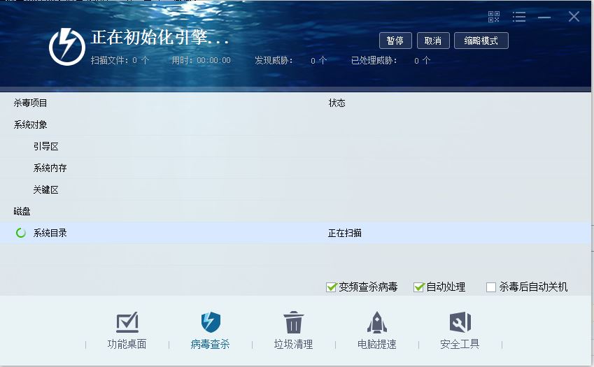 瑞星卡卡安全论坛个人产品讨论区瑞星杀毒软件 瑞星杀毒软件运行时,进程条不显示,也就是说软件不运行杀毒,怎么回事?