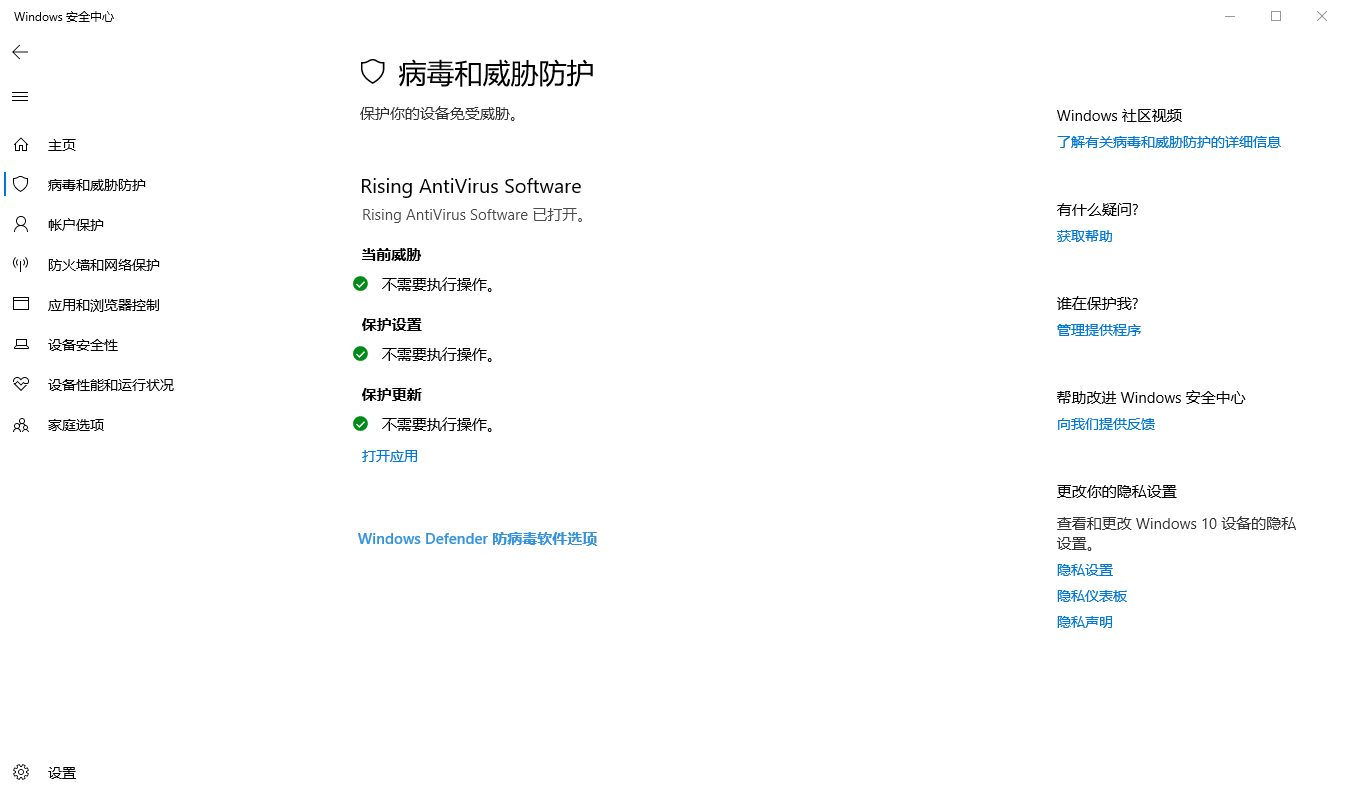 2.瑞星的各个产品在安全中心那儿的防病毒目前是统一展示“Rising AntiVirus Software”