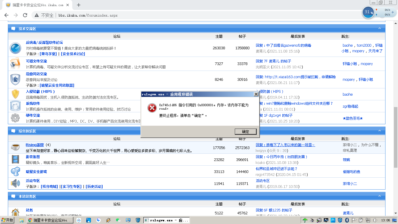 这是防火墙RFW的日志程序报的,瑞星防火墙已停止维护,所以此问题暂不解决了,抱歉!