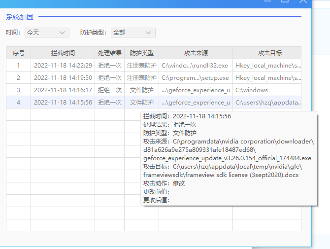 系统加固拦截弹窗不合理更新英伟达驱动时发现系统加固自动拦截阻止导致驱动无法更新