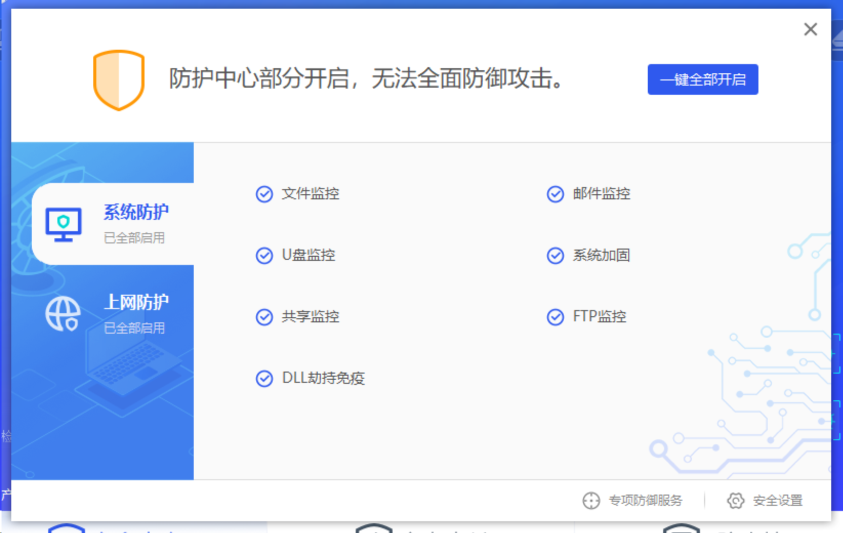 [疑似bug] 即使防护全开也显示防护未完全开启