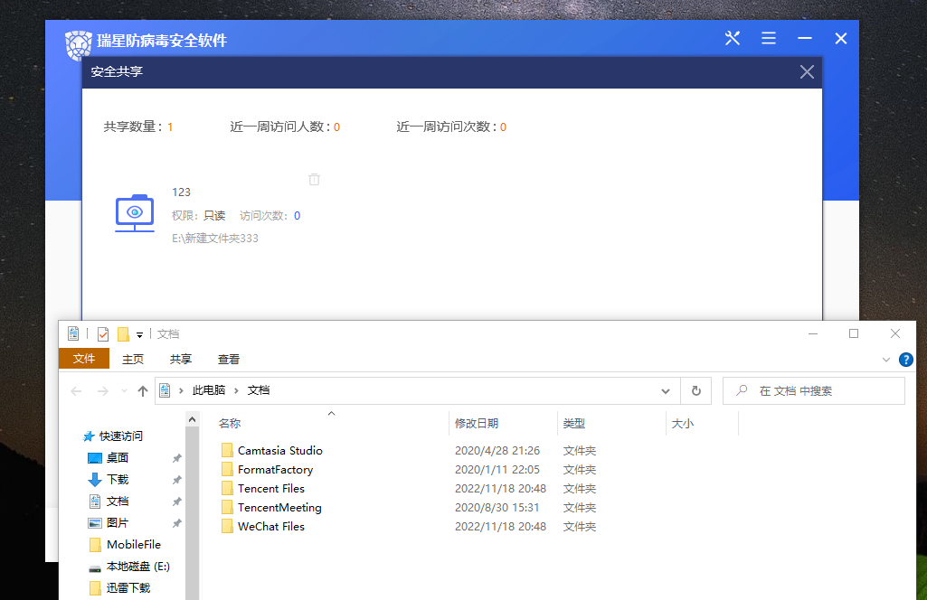 首先建立一个文件夹,将它用共享安全程序设置为共享,命名为123。此时点击123就可以打开这个文件夹。但是如果把这个文件夹删除了,再点123就直接打开系统的文档文件夹。建议改为:如果共享文件夹已删除的,再点击则提示:该共享文件夹已删除,安全共享已失效。