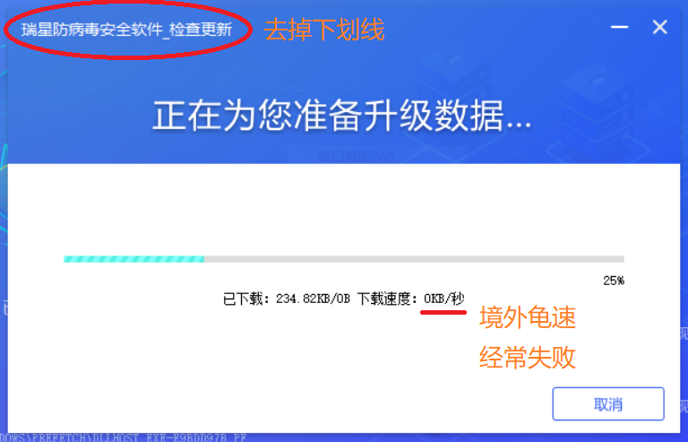 升级窗口标题有下划线,使用同样界面的在线修复也有这样的下划线,有种产品没做完的感觉。另外,境外更新网速很慢,我目前还没有成功更新过,在线修复也是一样。
