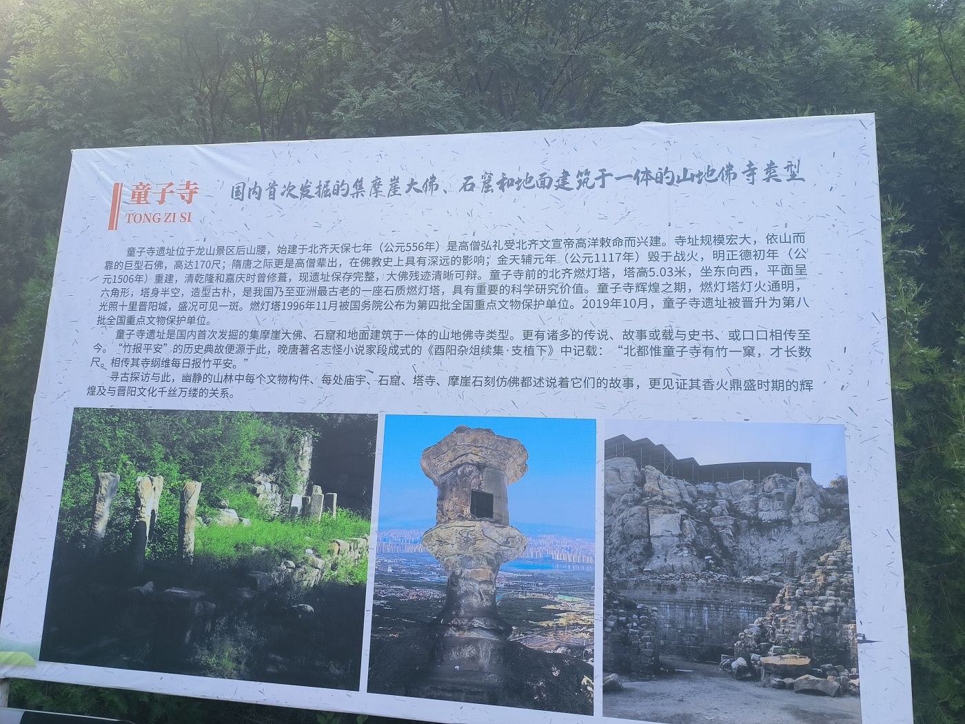 天龙山原名方山,海拔1370米,位于晋祠西11公里处,560年(北齐皇建元年)兴建天龙寺,山以寺得名。上世纪20年代国内军阀混战列强入侵,在内忧外患的大环境下天龙山石窟里众多文物被外国文物窃贼盯上了,大量的佛首流落海外,如今的石窟已经残破不堪。所以看到祖国今日的繁荣富强,我为我是一个中国人感到骄傲和自豪。