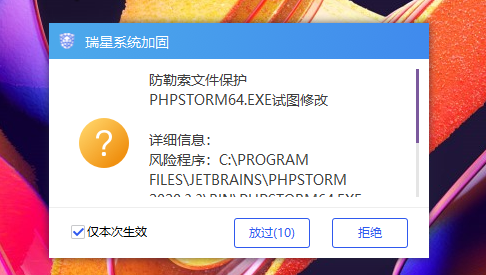 回复:phpstorm启动时 触发瑞星防勒索功能