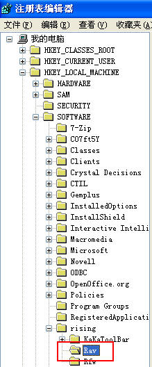 3.左边找到我的电脑/HKEY_LOCAL MACHINE/SOFTWARE/rising