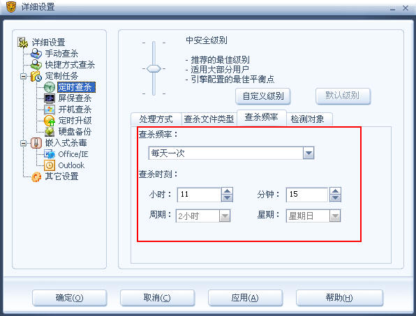 在杀毒软件里设定每天定时杀毒,但是到设定的时间,瑞星没有去杀毒。升级到最新版本也一样。