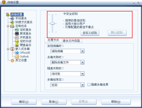 在使用瑞星杀毒软件进行手动杀毒时,可以设置其查杀级别,瑞星给的默认级别是“中级”,所以如果没有自己设置过,那么在杀毒时,显示的查杀级别就是“中级”。