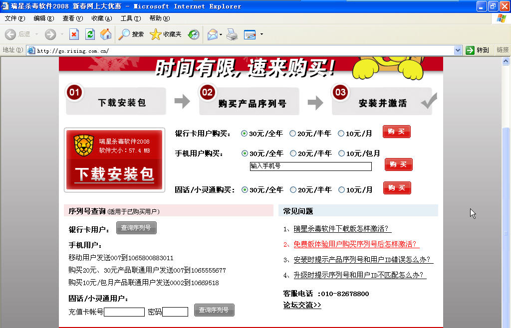 昨天开始,瑞星杀毒软件下载版推出了新春优惠