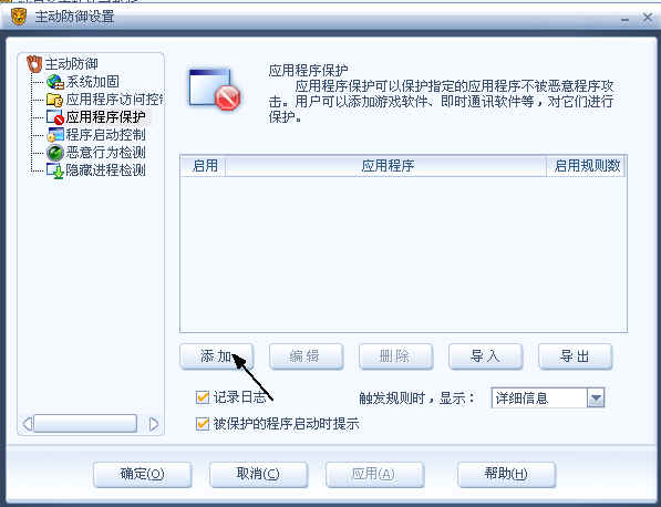 怎么添加到杀毒软件主动防御里的应用程序保护里,