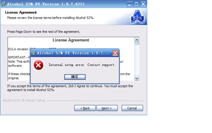请问大侠?为什么我一安装Alcohol 52%会出现错误提示?安装Alcohol 120%就不会出现。