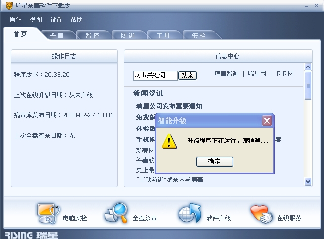 瑞星2008网络下载版包年30元为什么无法自动升级?