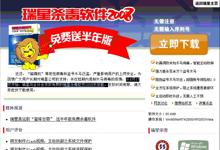 回复:“瑞星奥运前“普降甘霖” 送半年版免费杀毒软件