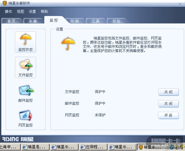 当你安装瑞星杀毒软件过程中选择安装的监控项,而在使用过程中