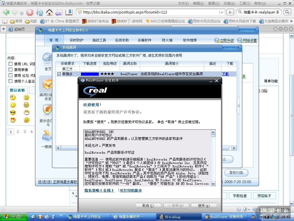 我用的暴风影音,没有用Realplayer,但是刚才瑞星卡卡6.0让我修复realplayer的漏洞,我下载完卡卡6.0给的补丁,安装时发现,其实就是Realplayer 11代的安装程序,这是什么意思??瑞星要耍流氓吗??