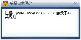 右键选定文件进行瑞星杀毒时,总提示“进程C:\WINDOWS\EXPLORER.EXE触发了API类规则”,该怎么解决?请高手指点。谢谢!